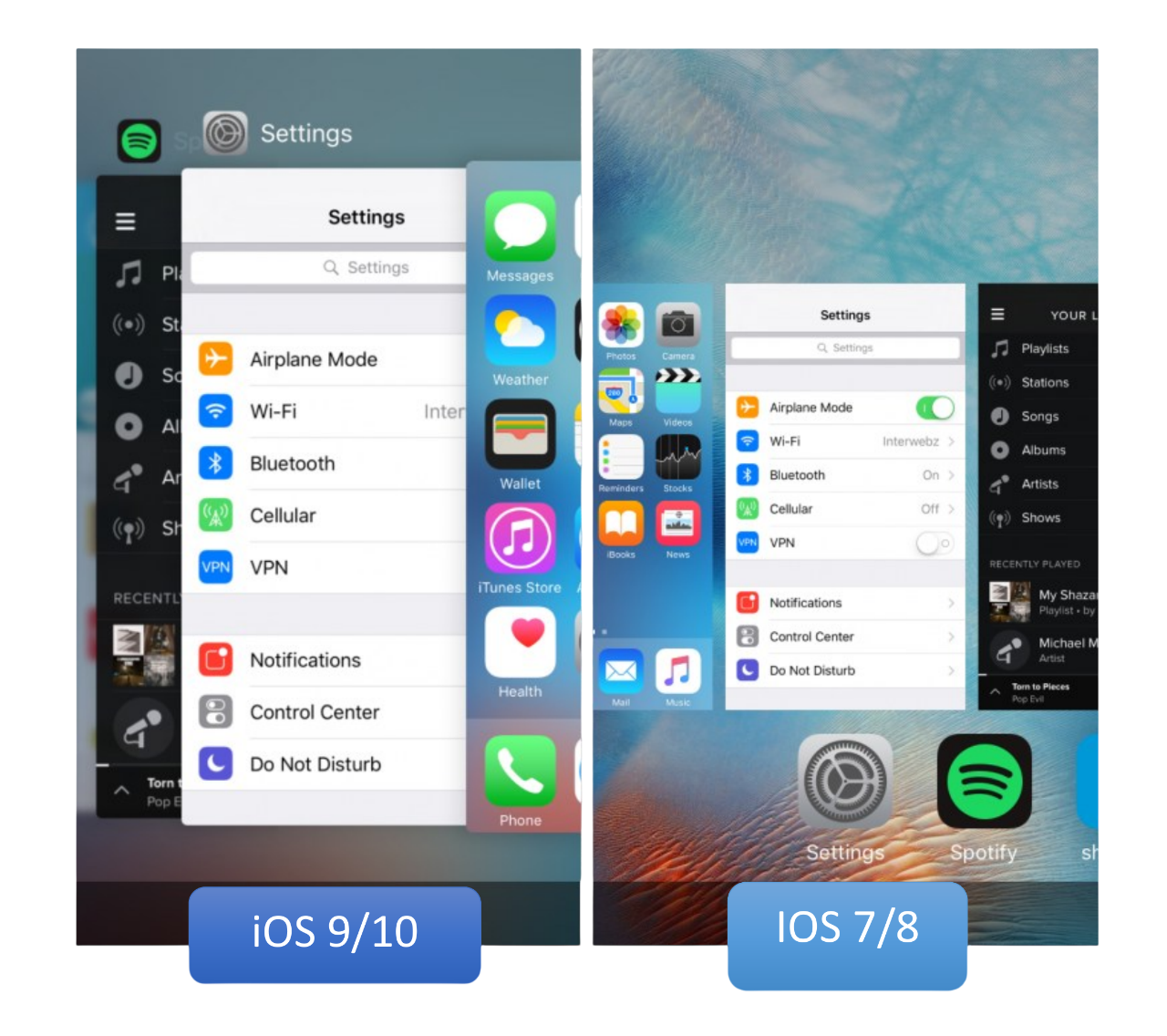 App Switcher menu iOS 7 vs iOS 9