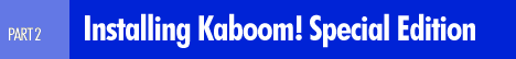 Now for the good stuff! In just a few minutes you'll be knee deep in gasps and groans. This section of the User Manual will help you to install Kaboom! and will take only a few minutes to complete.
