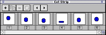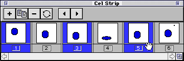 When this button is clicked the previous cel will appear. When the button is clicked down continuously, the animation will be