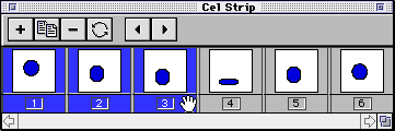 When this button is clicked the next cel will appear. When the button is clicked down, the animation will continuously play.