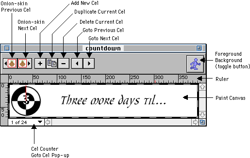 Similar to most video control panels, you can rewind, fast forward (Go to Last Cel), stop, play, step back and step forward one cel at a time with the controller.