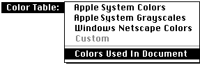 1. After "Colors Used" is selected for an image that does not use all 256 colors of the standard Mac color palette.