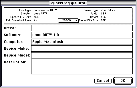 Computer: The type of computer used to create the document. ("Apple Macintosh" by default but it may be changed.)